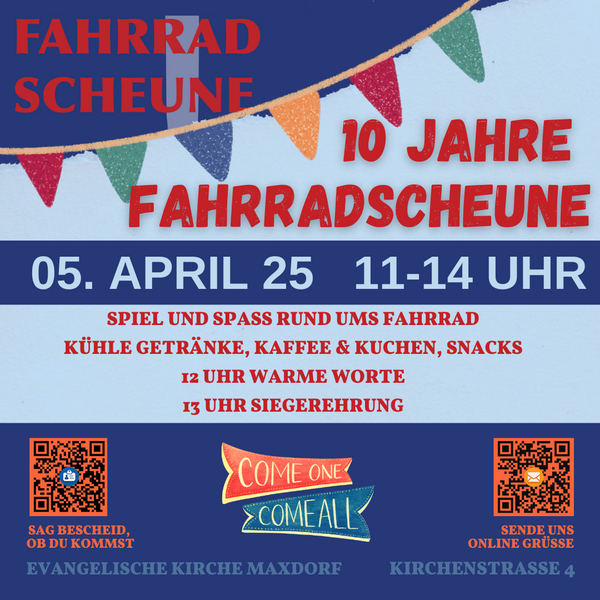 Wir feieren 10 Jahre Fahrradscheune am 4. April 2025 von 11-14 Uhr!