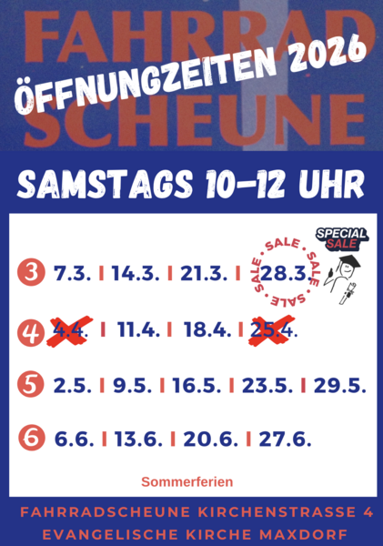 Wir sind in den Osterferien. Ab 11. April bis zu den Sommerferien sind wir dann samstags für Sie da. Bitte beachten Sie die Öffnungstage in unserer Übersicht.